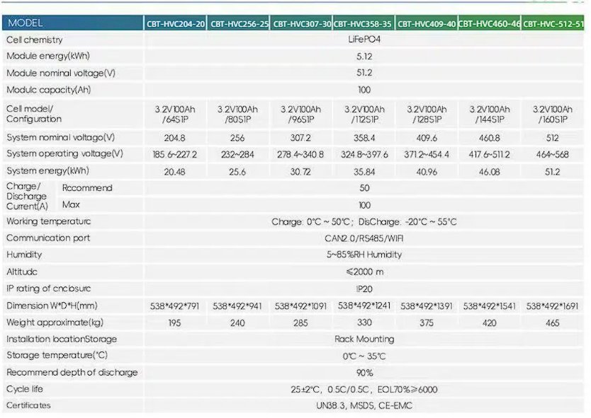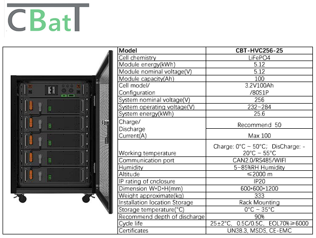 CBT-HVC256-25 -vysokonapäťové batériové úložisko